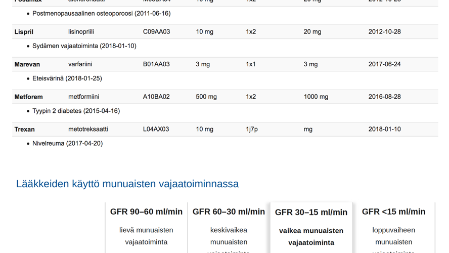 Päätöksentuki tarjoaa myös erittäin tehokkaan näkymän lääkityksen kokonaisarvioinnista (LKA). Lääkityksen kokonaisarvio analysoi potilaan lääkityksen 9 eri tietokannan avulla (indikaatiot, kontraindikaatiot, munuaisten vajaatoiminta, haittavaikutukset, raskaus, imetys, laboratoriotulokset ja yliannostus).